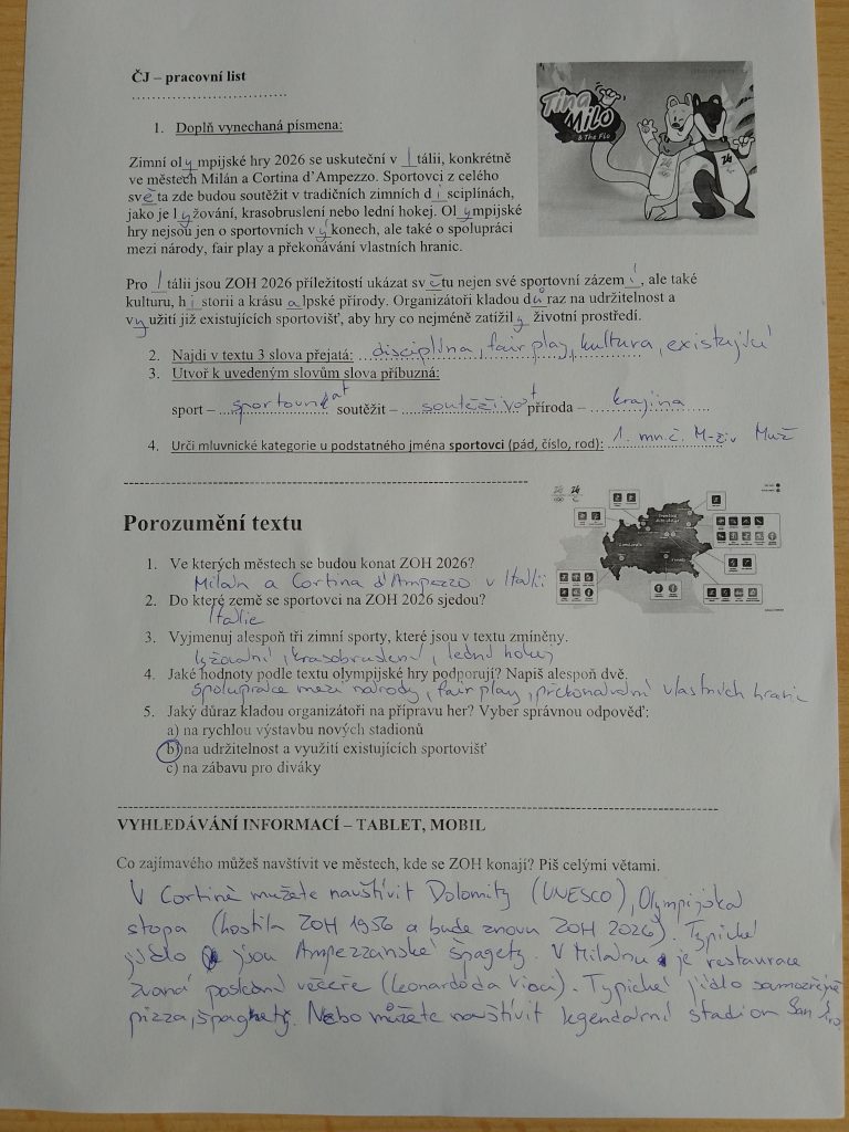 V 8. třídě proběhla před jarními prázdninami projektová výuka propojující více vzdělávacích oblastí a podporující spolupráci žáků. Cílem bylo propojit více předmětů (anglický a český jazyk, hudební a tělesná výchova), posilovat komunikační dovednosti, podporovat kreativitu a vést žáky k samostatnému vyhledávání informací. Projekt ukázal, že učení může být zábavné.