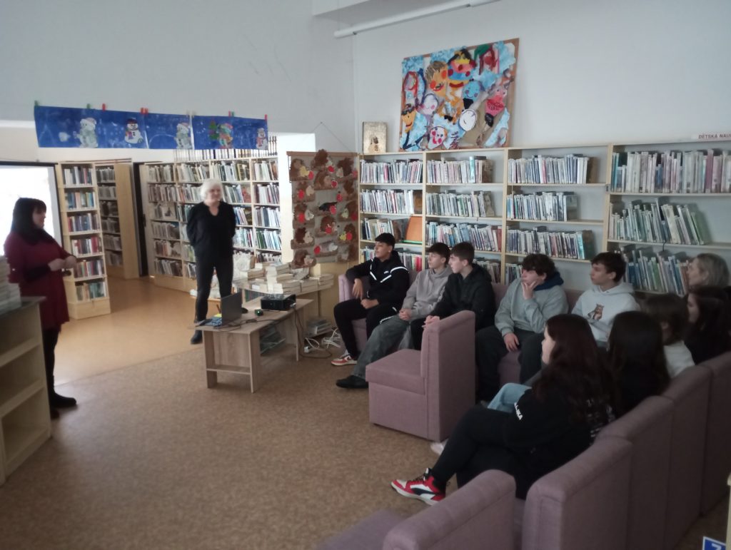 Před prázdninami navštívili žáci devátých ročníků místní knihovnu, kde se setkali s paní spisovatelkou Petrou Martíškovou, která píše knihy pro děti a dospívající.
