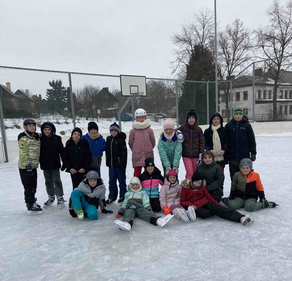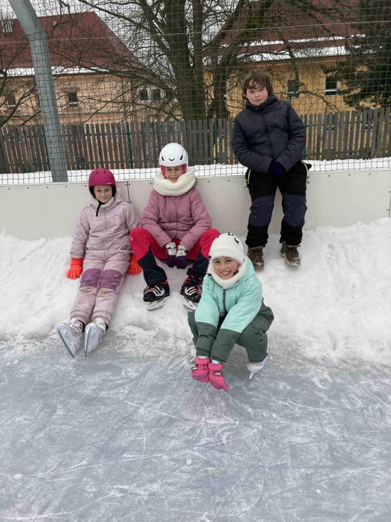 Čtvrťáci a páťáci využili možnosti v rámci tělesné výchovy zabruslit si na kluzišti za školou. I když někteří stáli na bruslích poprvé nebo podruhé v životě, zvládli základy bruslení všichni. Ti zdatnější se pokoušeli už o krasobruslařské kreace. Když počasí dovolí, půjdeme to jistě znova zkusit.