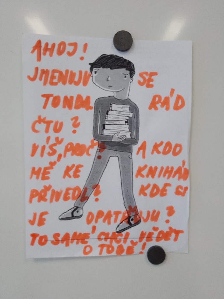 Žáci si do školy přinesli knihu, kterou zrovna čtou, nebo se chystají přečíst. V úvodu se seznámili s fiktivním vrstevníkem Tondou, který velmi rád čte a vymýšleli, proč rád čte, kdo ho ke čtení přivedl a kde si knihy opatřuje.