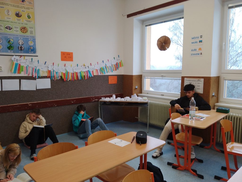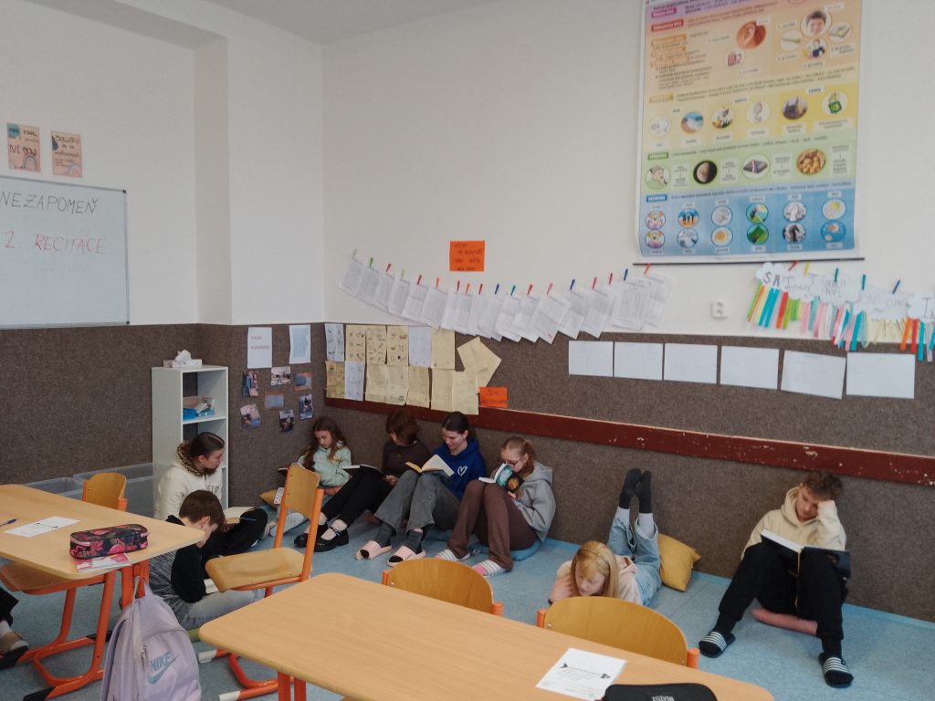 Pak se všichni začetli do svých knih. Mohli si vybrat místo, kde se jim bude číst nejpohodlněji.
