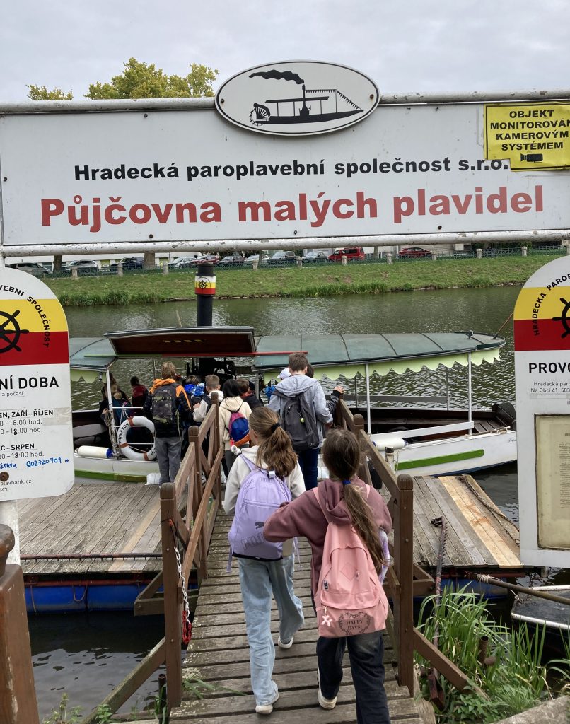 V září se pátá třída vydala v rámci předmětů vlastivěda a přírodověda do našeho krajského města. Vyžili jsme všech dostupných dopravních prostředků. Ze Žacléře lze jet samozřejmě jen autobusem, do Hradce jsme dojeli spěšným vlakem jménem Lucinka, k hvězdárně v Hradci jsme se svezli trolejbusem a krásy Hradce jsme pozorovali z paluby lodě.