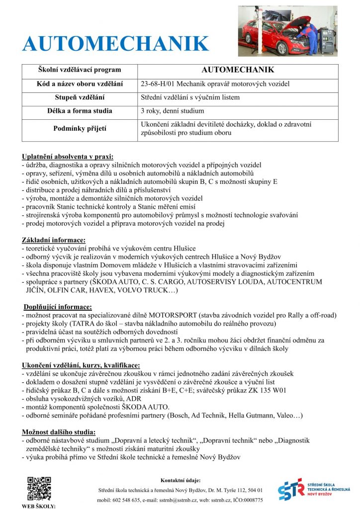 Info z SŠTŘ Nový Bydžov
